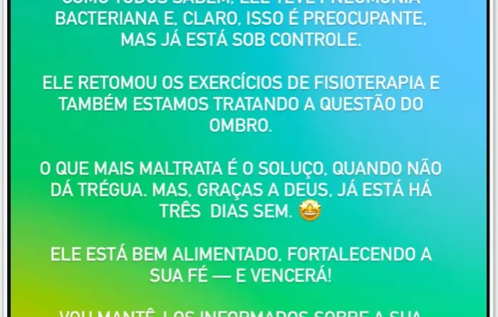 Read MoreA ex-primeira dama Michelle Bolsonaro (PL) afirmou nesta 5ª feira (2.abr.2026) que o ex-presidente Jair Bolsonaro (PL) se recupera bem,